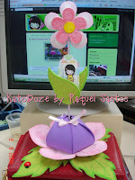 Na "bolsinha" lilás vai balas e entre as folha a foto da Aniversariante agradecendo a presença.